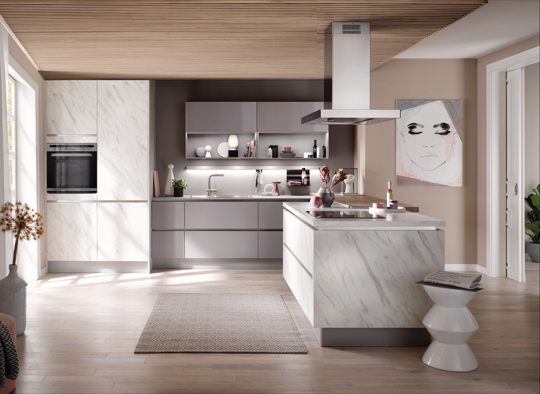 One of the great benefits of a handleless kitchen is that it fits in extremely well with most contemporary kitchens, it brings an effortless and sleek look to the overall aesthetics. No handles mean that other kitchen features get a chance to really stand out without any competition for attention – such as a ‘wow factor’ splashback or worktop.